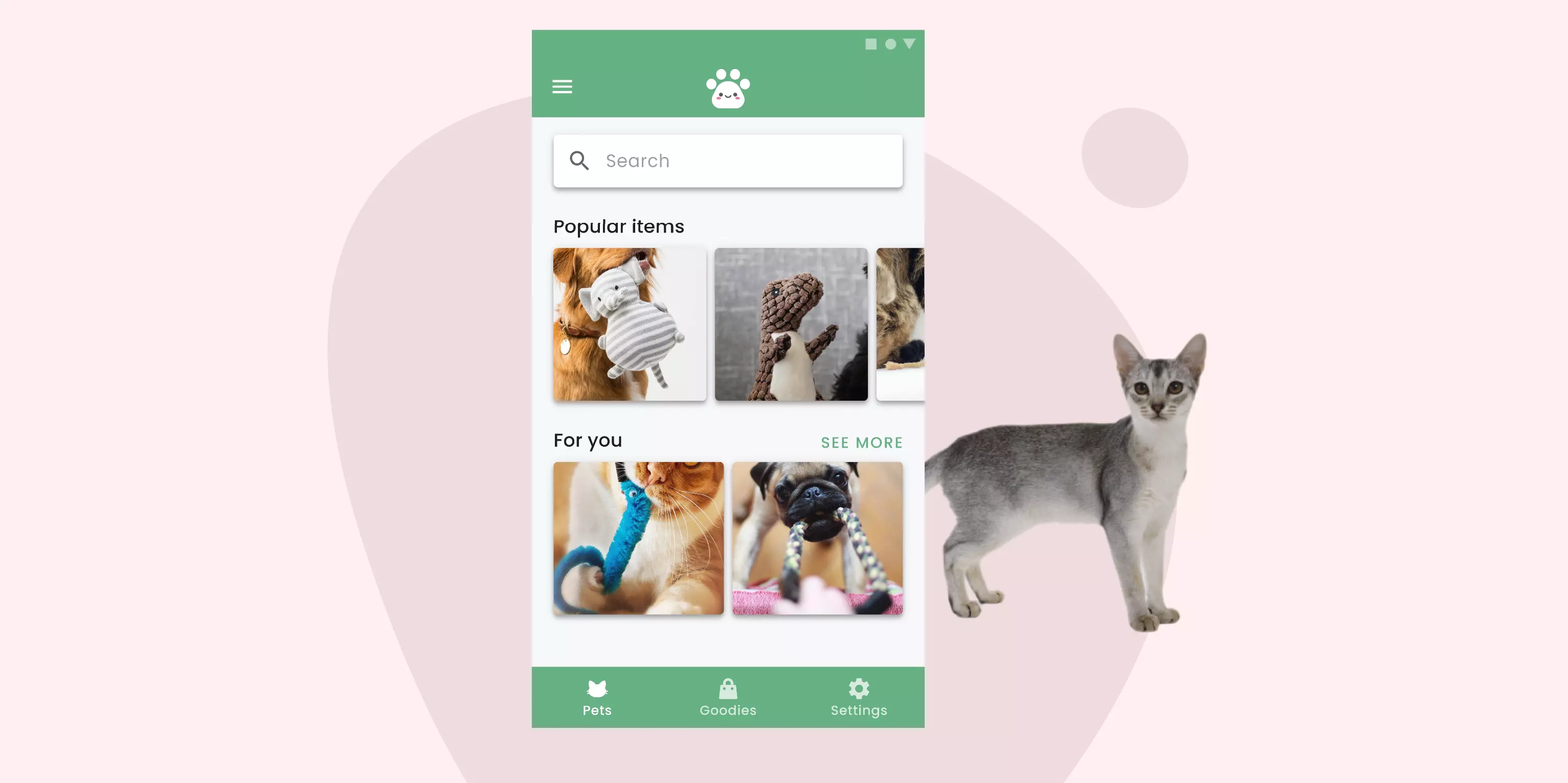 For this article, I’m going to use this fake app I’ve created called Petsy. It’s an app that pet owners can use to buy new toys for their cats or dogs. It’s aimed at young professionals who have bought their first pet during the lockdown.