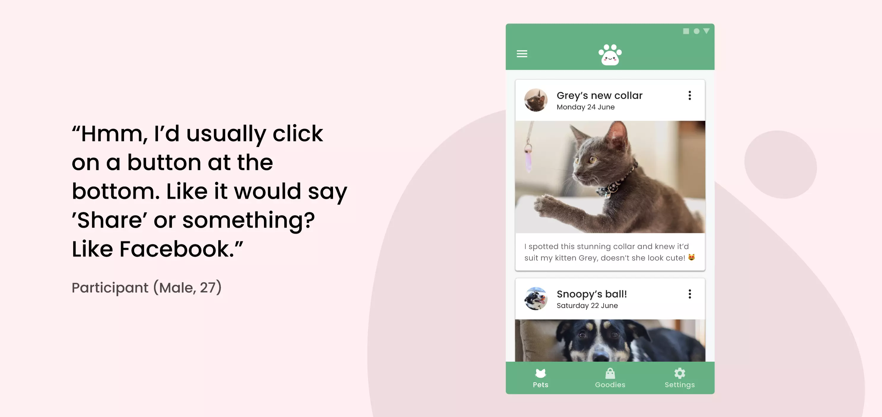 - Introduction: I’m a UX Designer working on an app that helps new pet owners buy toys and treats for their pets.